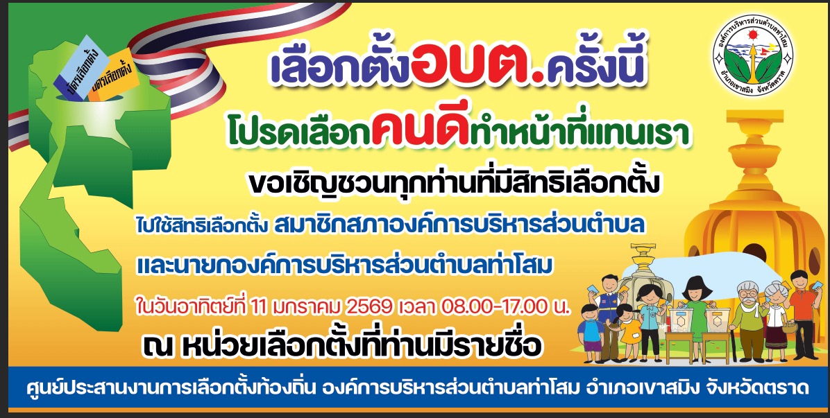 องค์การบริหารส่วนตำบลท่าโสม เชิญชวนทุกท่านที่มีสิทธิเลือกตั้งไปใช้สิทธิเลือกตั้ง