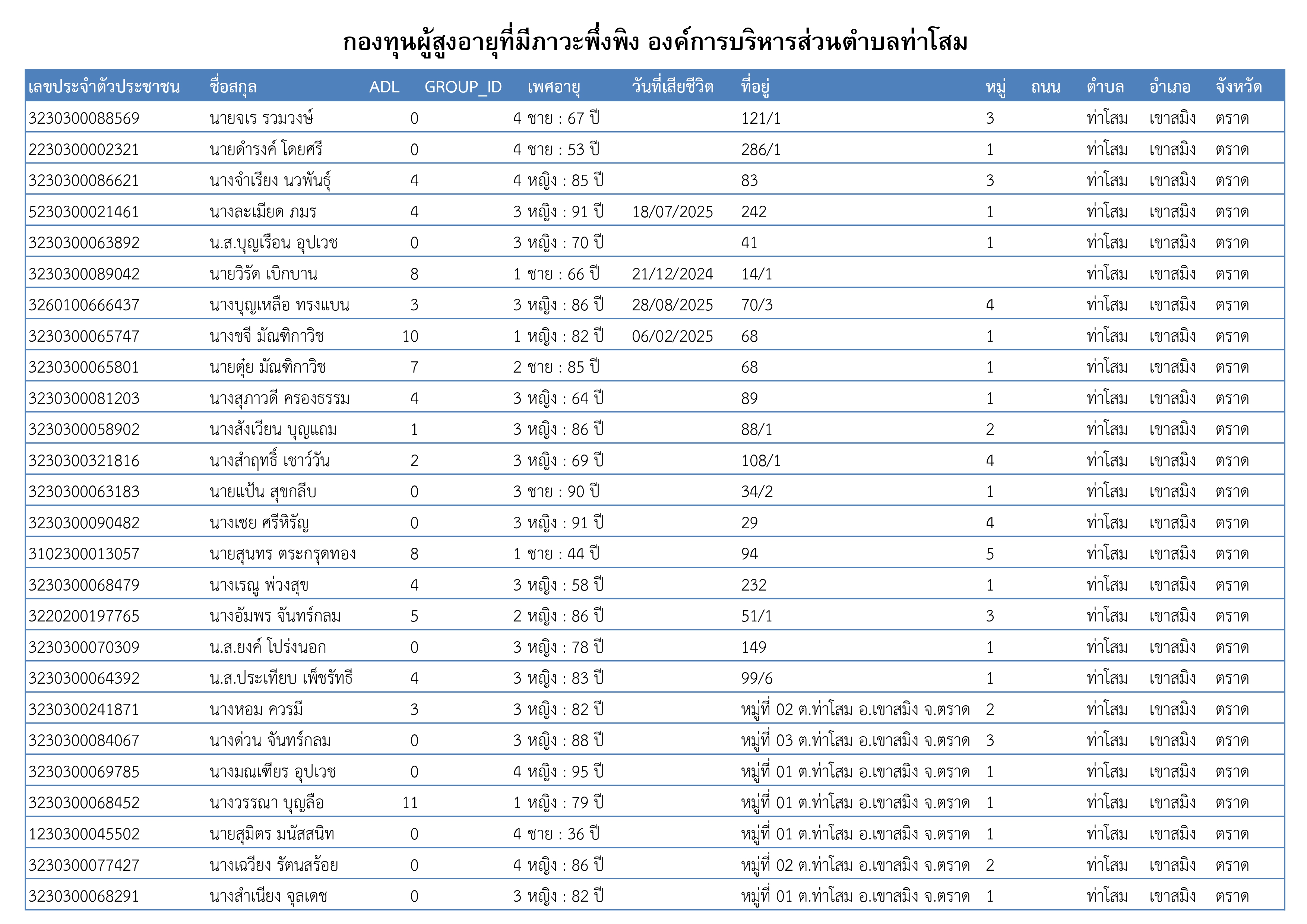 ฐานข้อมูลผู้สูงอายุที่มีภาวะพึ่งพิง